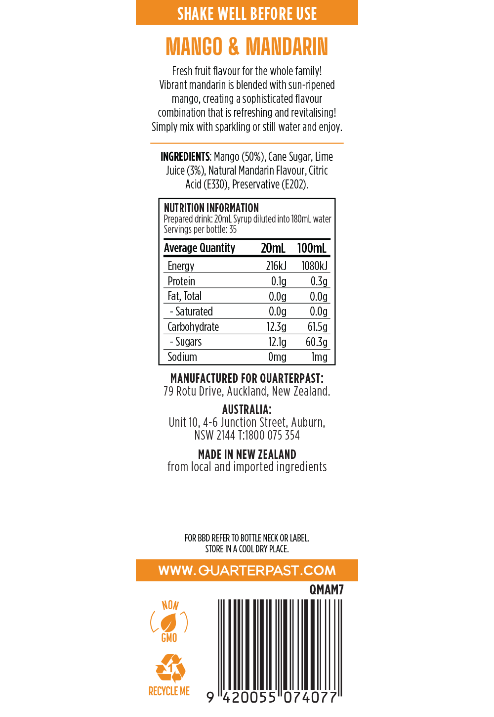 Recommended use: Add 20mL of syrup to still or sparkling water.