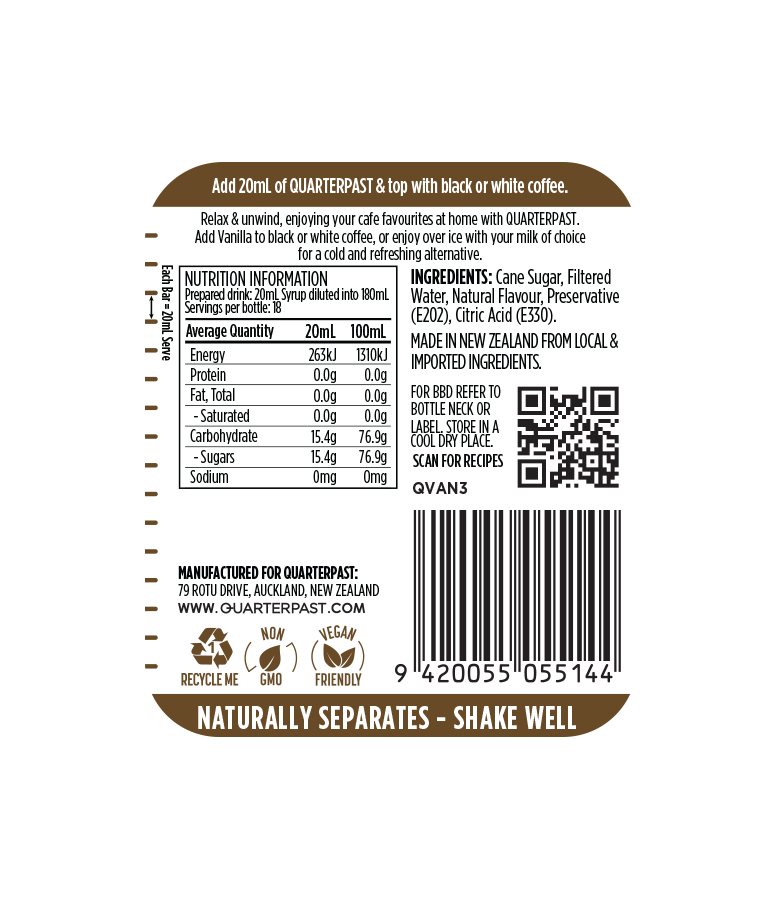 Recommended use: Add 20mL of syrup to black or white coffee.