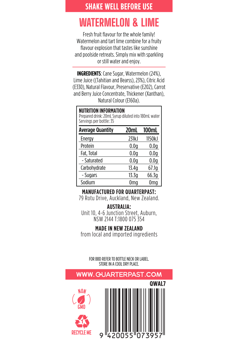 Recommended use: Add 20mL of syrup to still or sparkling water.