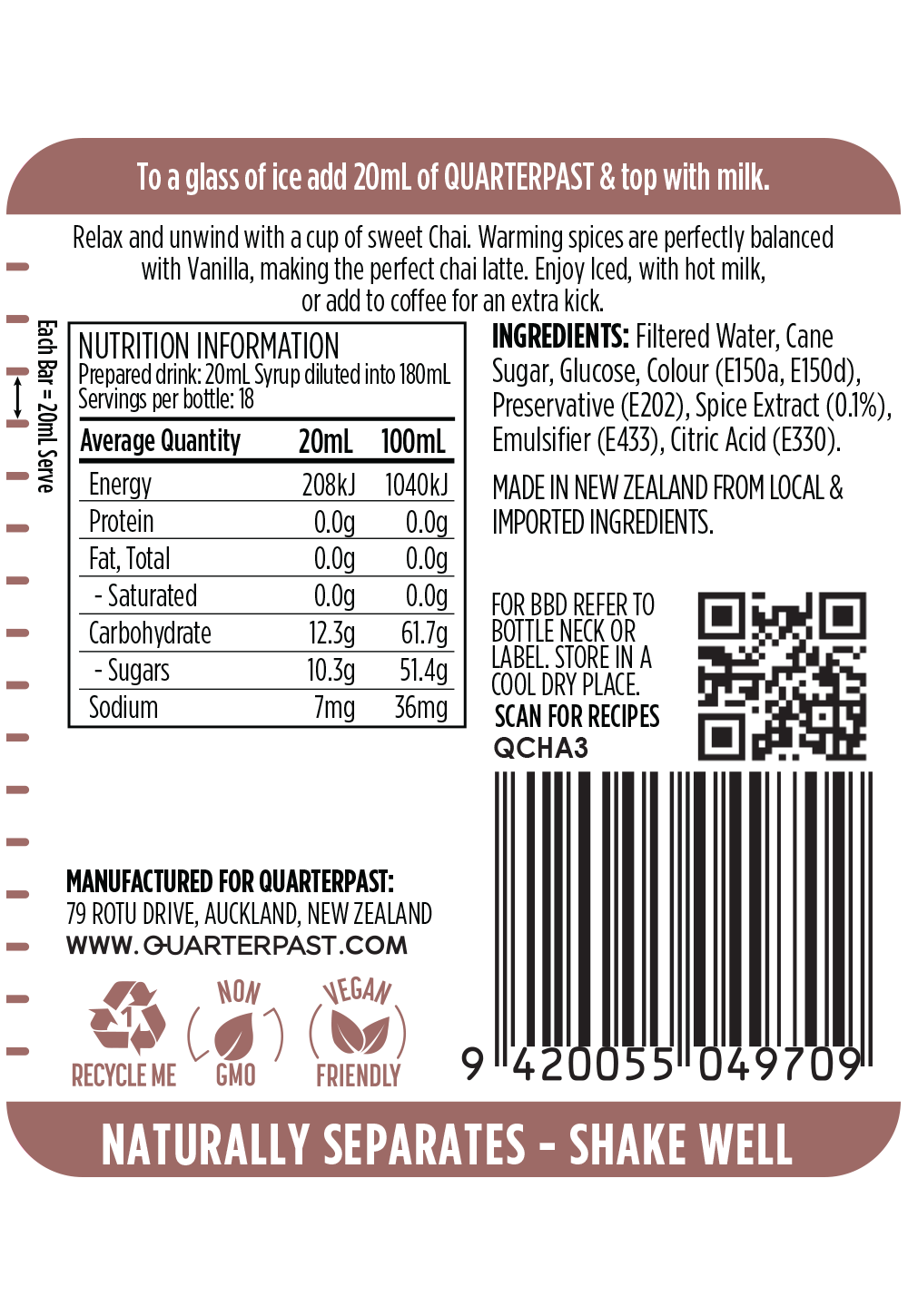Recommended use: Add 20mL of syrup to hot or cold milk.