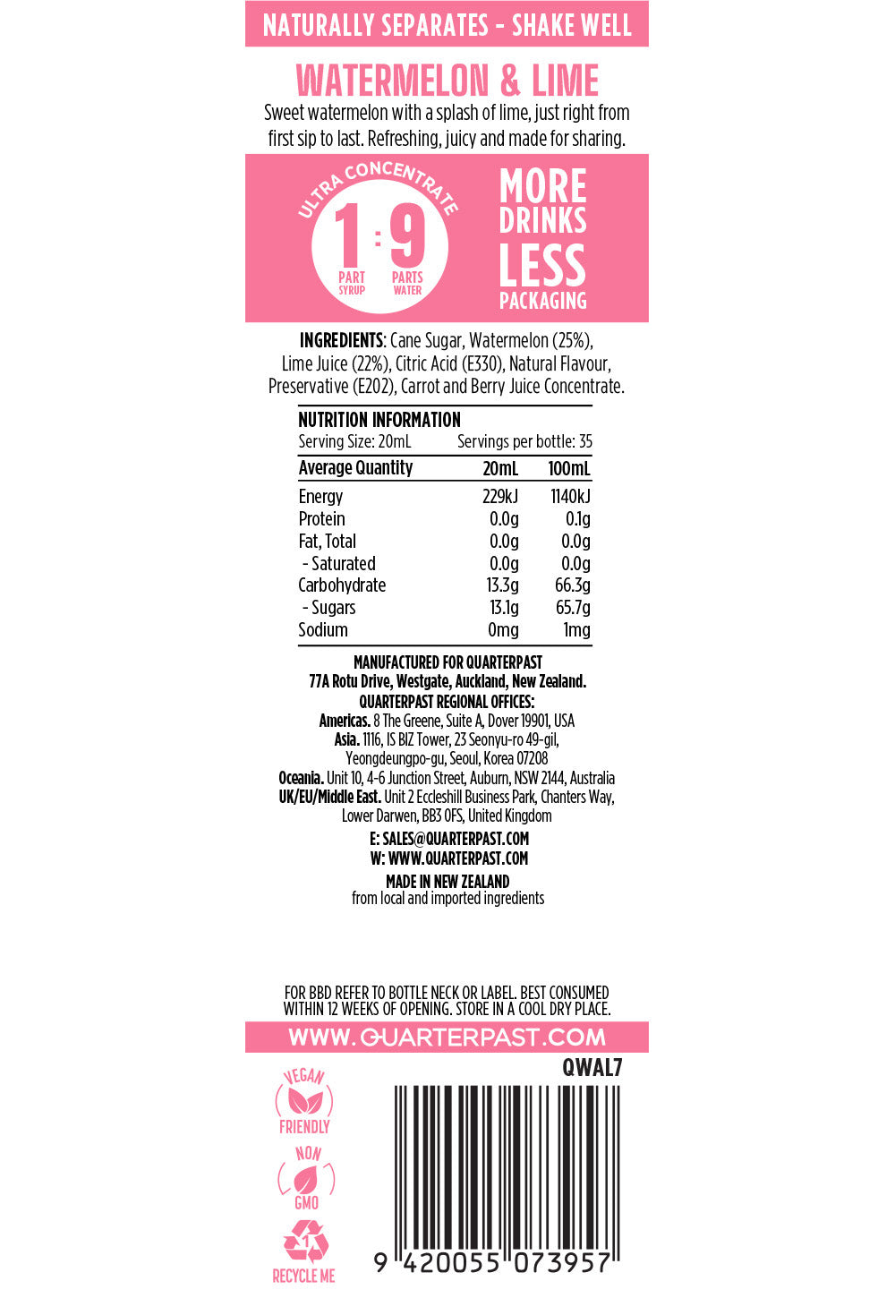 Watermelon & Lime Cordial 700mL