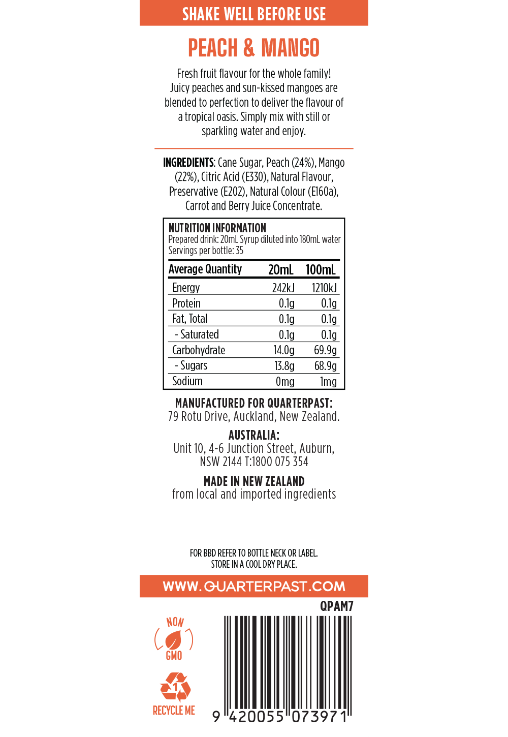 Juicy peaches blended with tropical mango for a fruity favourite everyone loves. It is the go-to for big jugs on the table, backyard BBQs or kids running through the sprinkler. Sweet, smooth, and made for sharing.